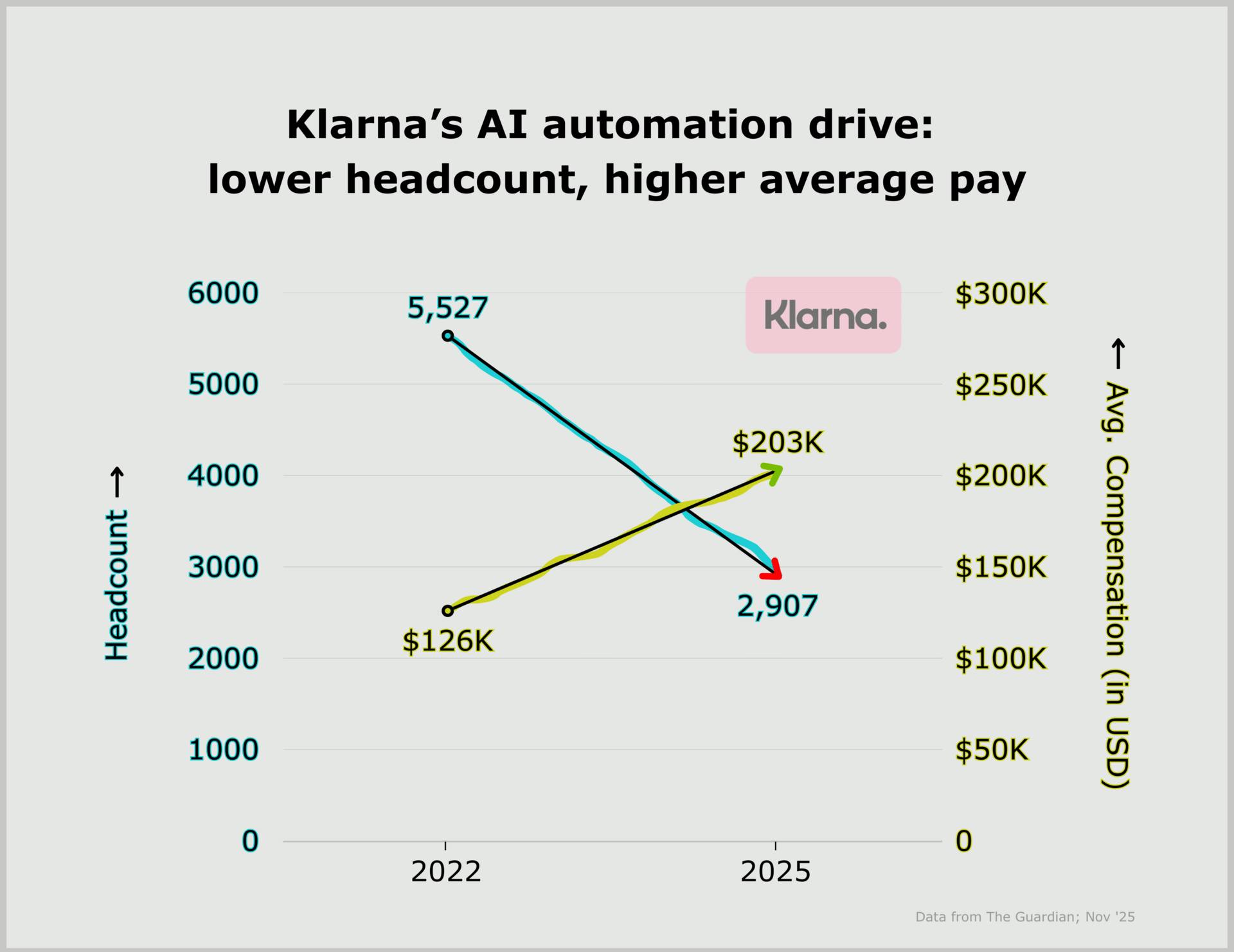 > ~48% cut in headcount + ~60% rise in pay driven by AI automation