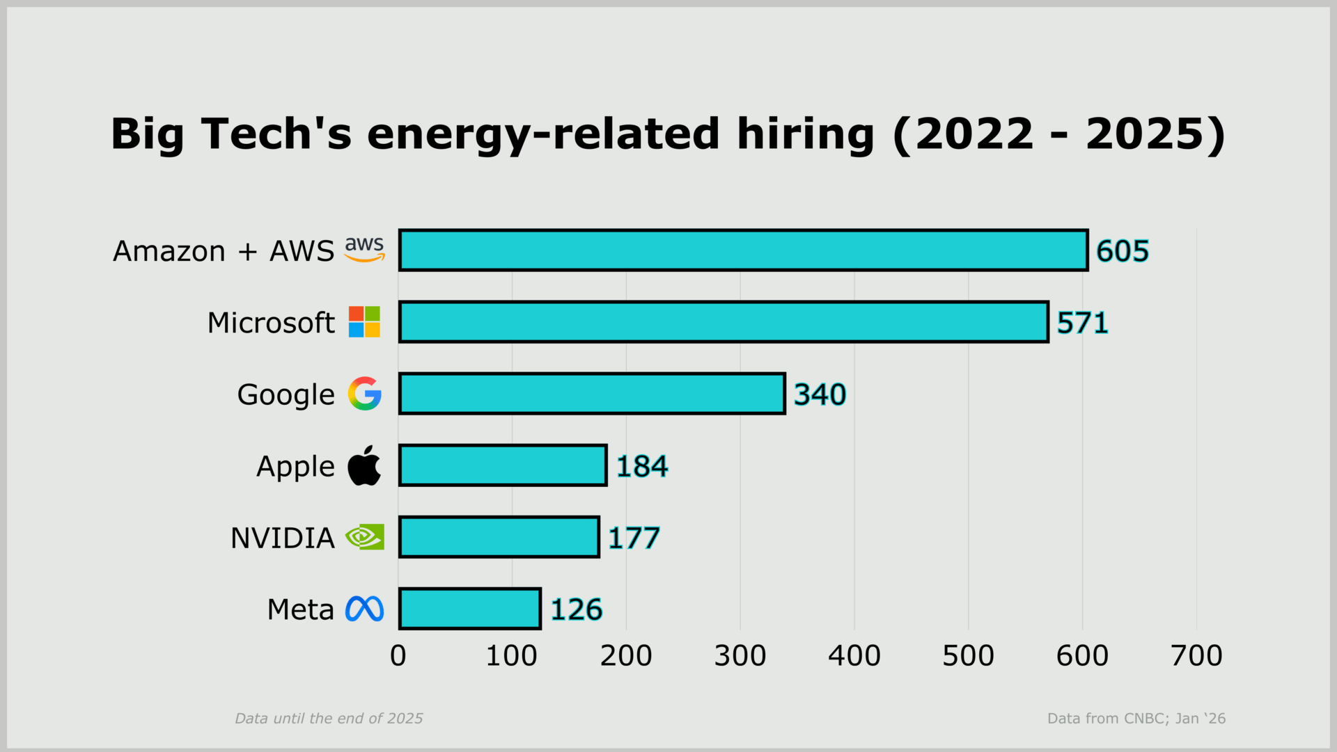 > hiring concentrated in already scarce operational roles: energy procurement, power markets, grid interface, energy strategy