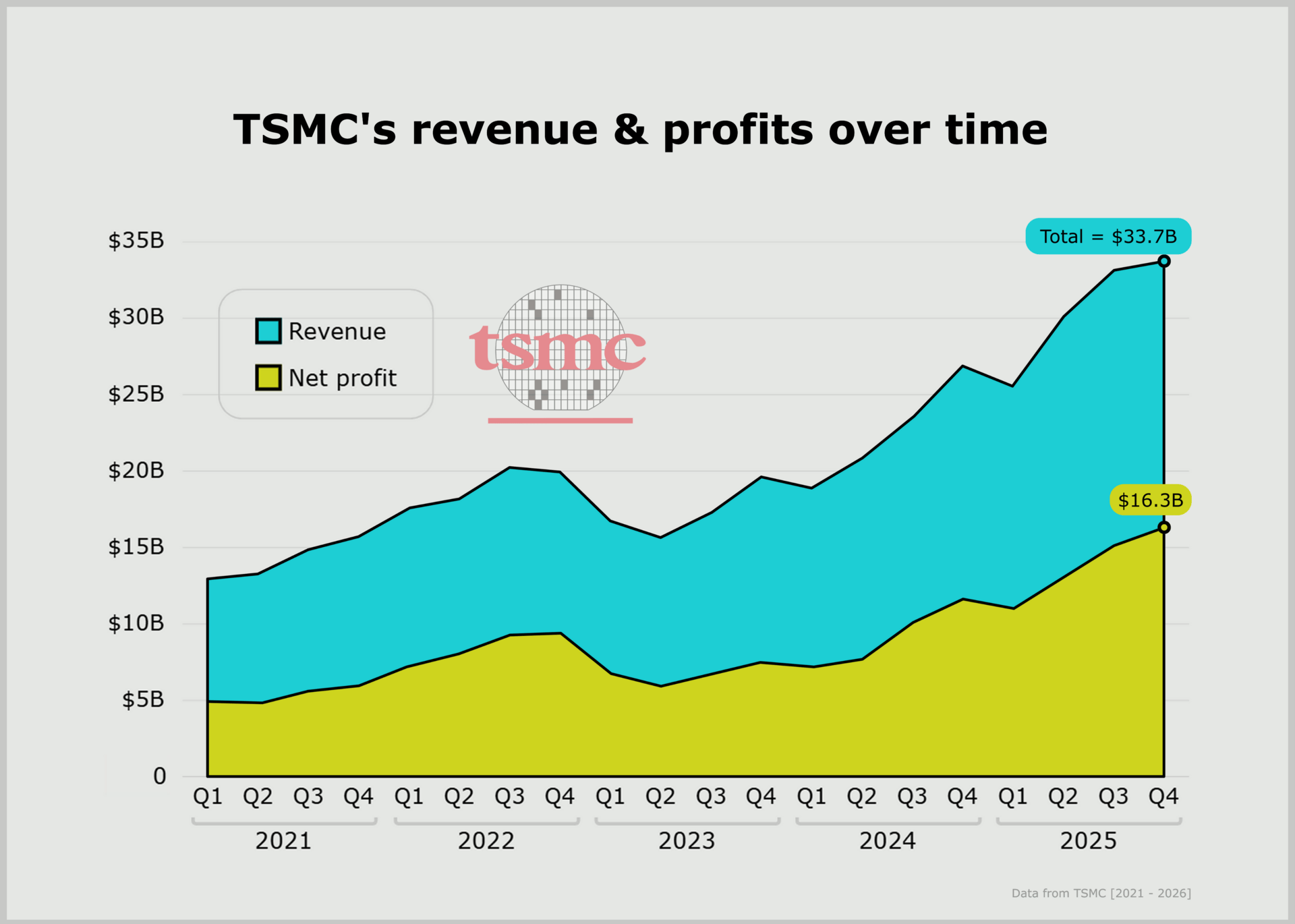 > Q4 revenue +20% YoY & profit +35% YoY beat expectations; AI/HPC drove upside up with HPC (AI+5G) at 55% of sales vs 32% smartphones