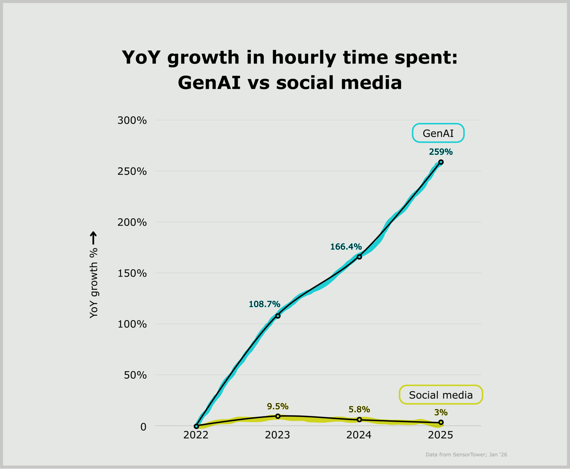 > meanwhile genAI time spent hit 48B hours in 2025, up 3.6× YoY & 10× 2023