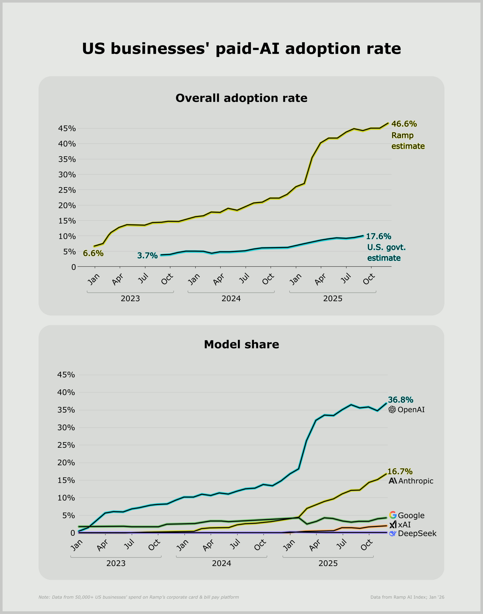 > Ramp: AI adoption sees biggest jump since July, led by enterprise chat + OpenAI API spend