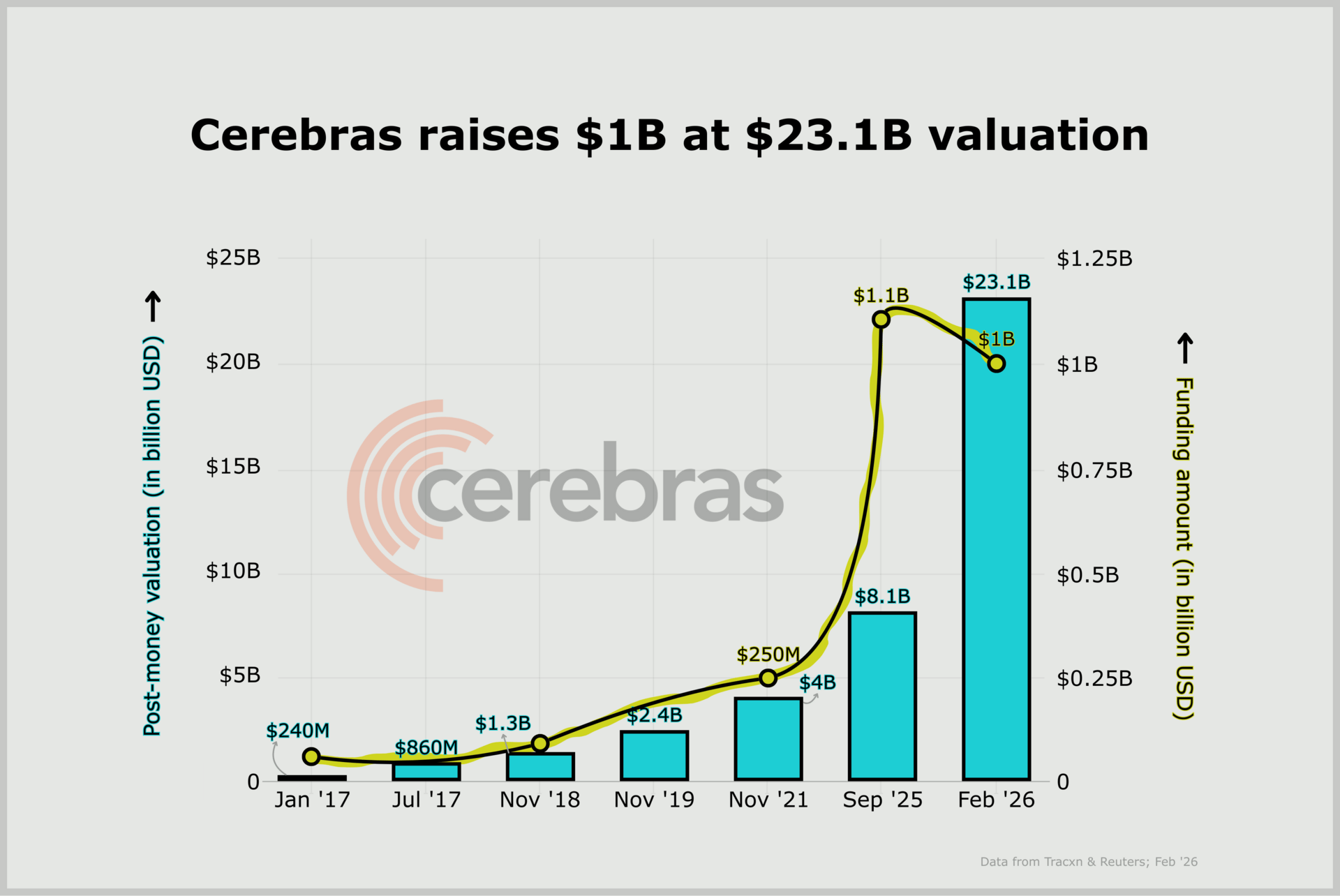 - Cerebras raises $1B at $23.1B valuation