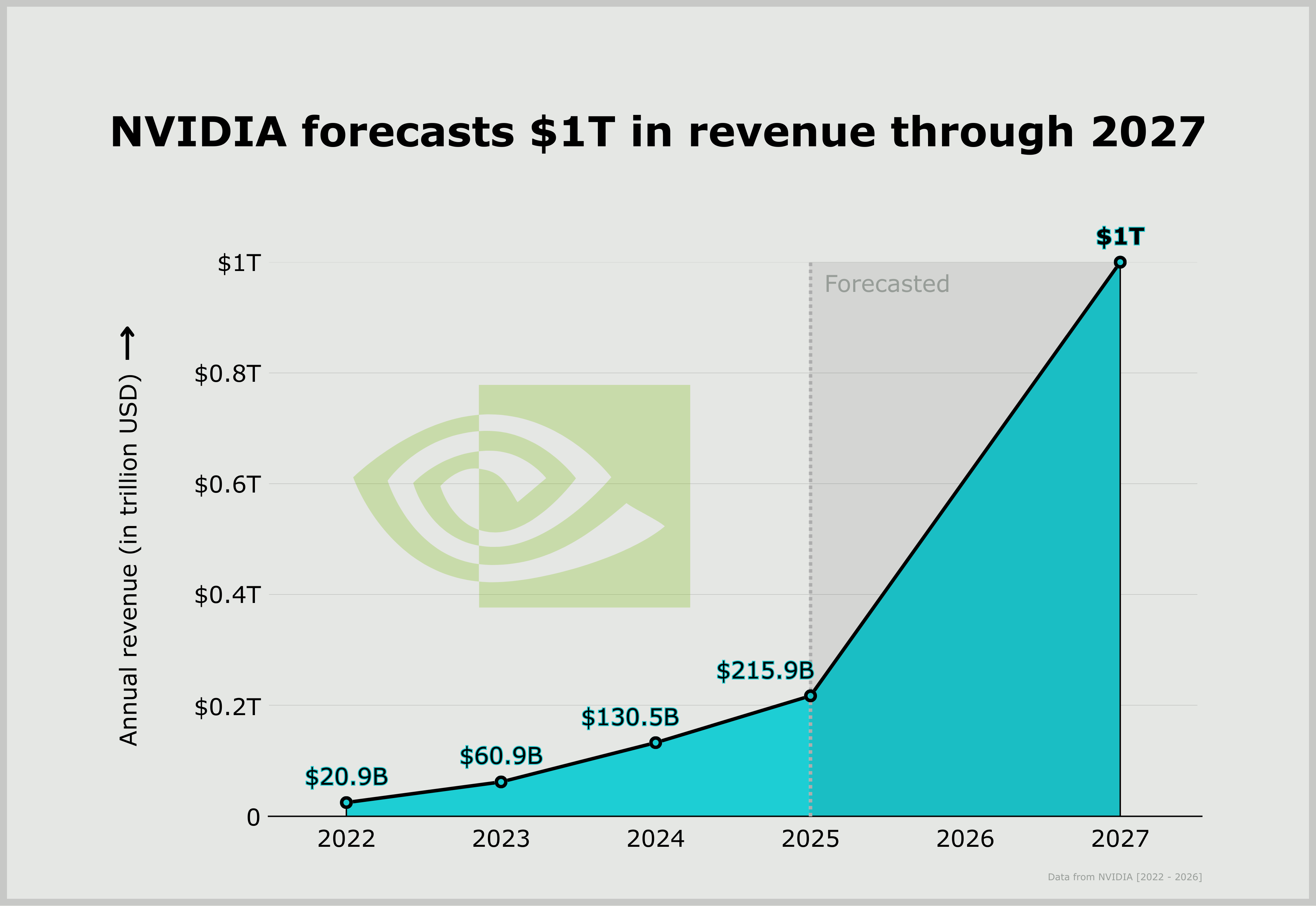> $1T cumulative revenue projection from Blackwell + Vera Rubin chips through 2027